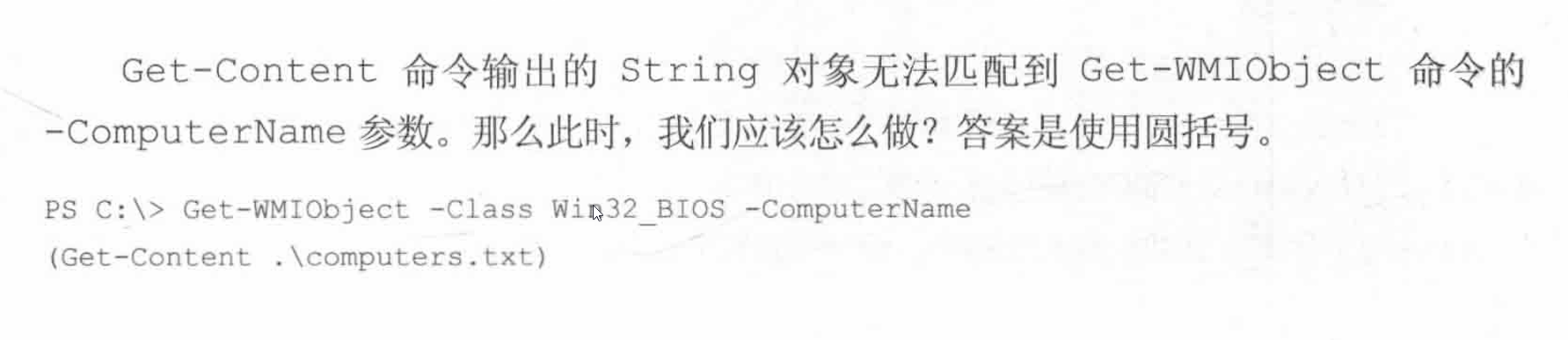 这个就是因为命令在前,变量参数在后,所以需要使用括号来控制执行的顺序,powershell和传统的数学一样,也是先括号内再括号外。